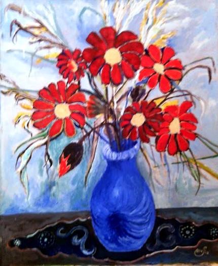 Composizione floreale in vaso .Acrilici su tela 50x70 Anno 2002