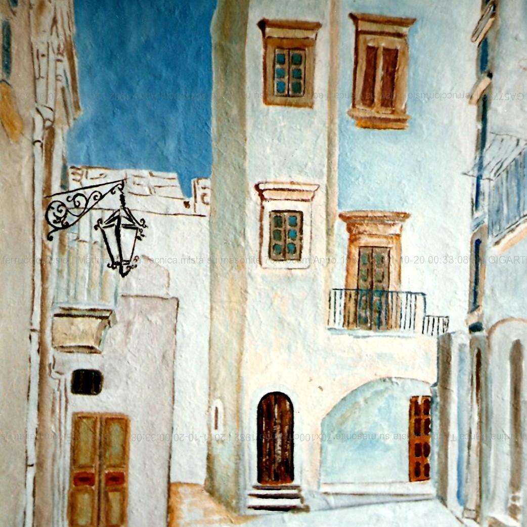 Martina franca Tecnica mista su masonite 70x100cm.Anno 1982